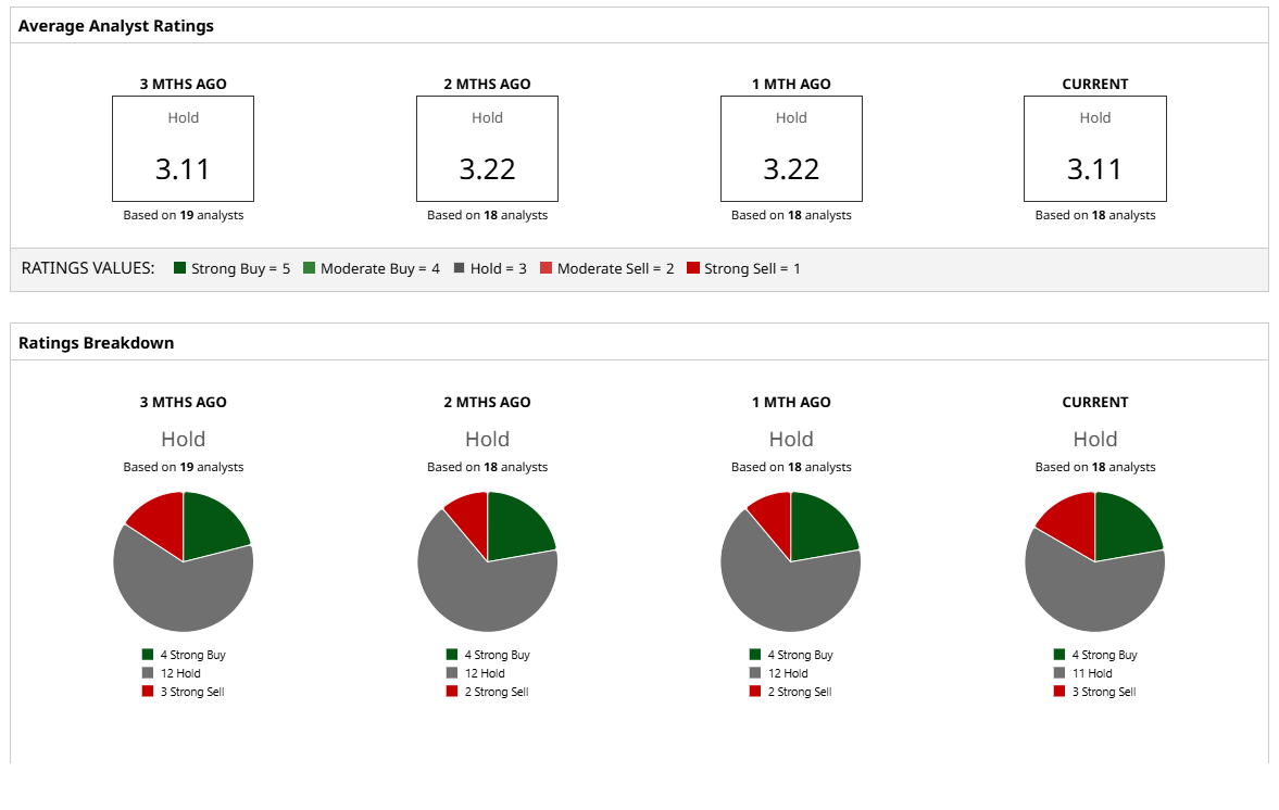 Overall, Wall Street has a cautious stance on Novartis stock, rating it a “Hold.” Of the 18 analysts covering the stock, four rate it a “Strong Buy,” 11 say it is a “Hold,” and three rate it a “Strong Sell.” The stock has surpassed its average target price of $122.43, and its high price estimate of $140 implies an upside potential of 5.7% from current levels.