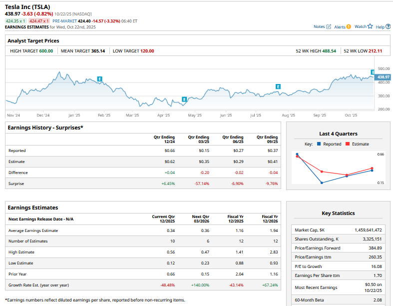 Tesla’s Q3 revenues rose 12% to $28.1 billion, which was well ahead of the estimates, led by a 44% year-over-year rise in the company’s Energy business. That segment, which once accounted for single digits of Tesla’s total revenues, contributed over 12% to its Q3 revenues. While Tesla’s revenues came in ahead of estimates as I had noted in the pre-earnings analysis, its per-share earnings fell to $0.39, trailing estimates due to higher expenses.