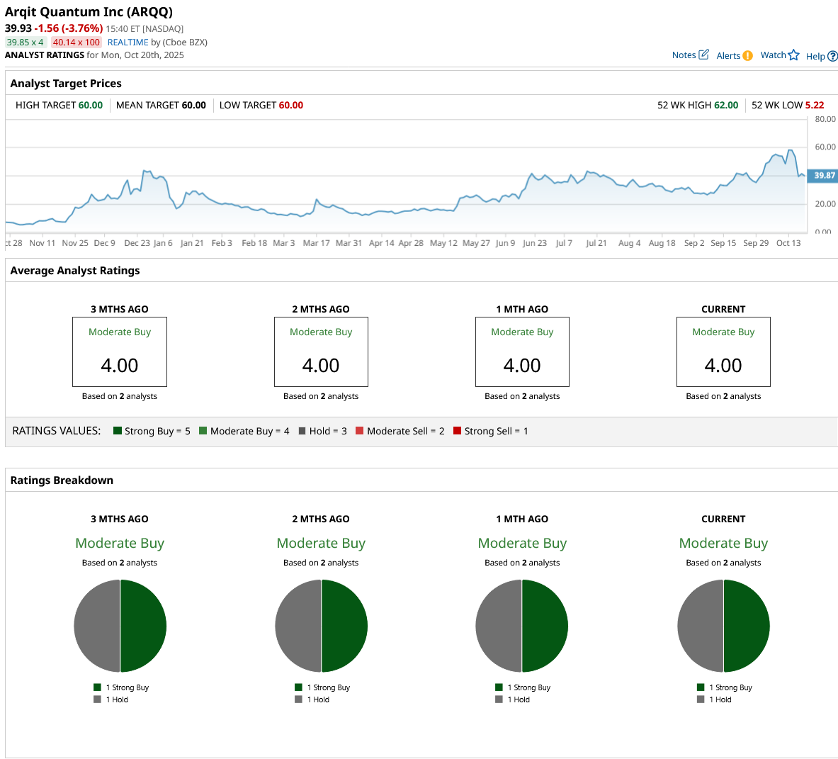 What's interesting about the consensus price target below is that the two analysts covering this stock both came to the same conclusion—that ARQQ stock should be worth roughly 50% more than it is today.