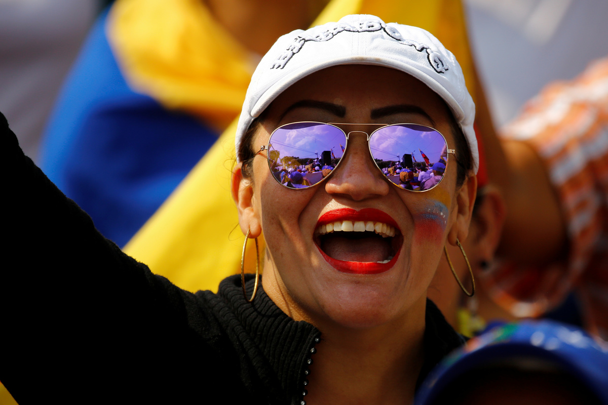 On Venezuela's border with Colombia, smaller opposition protests formed. In the town of Urena, across from Cucuta, several hundred people dressed in white danced in the streets, waving flags and chanting profanities against top government officials.