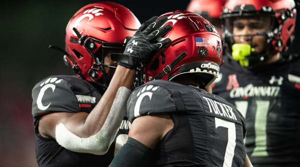 In the survive-and-advance sweepstakes that is the playoff race, the Bearcats were a major winner this weekend. Not because they played particularly well in laboring past a bad South Florida team, but because they simply remained undefeated on a weekend when at least one major threat was neutralized in the form of Oklahoma. And then there was another week of shine added to that victory over Notre Dame—which keeps winning. Cincinnati churned out 202 yards on the ground without leading rusher Jerome Ford, and had 506 yards total. But for the second straight game, Cincy’s veteran defense didn’t shut the door in the second half with a large lead. This time Cincinnati gave up 14 points in the third quarter and 21 in the second half to a USF offense that is showing improved signs of life with freshman quarterback Timmy McClain of late. We’ll see Tuesday what the persistent Bearcats doubters on the CFP selection committee think.