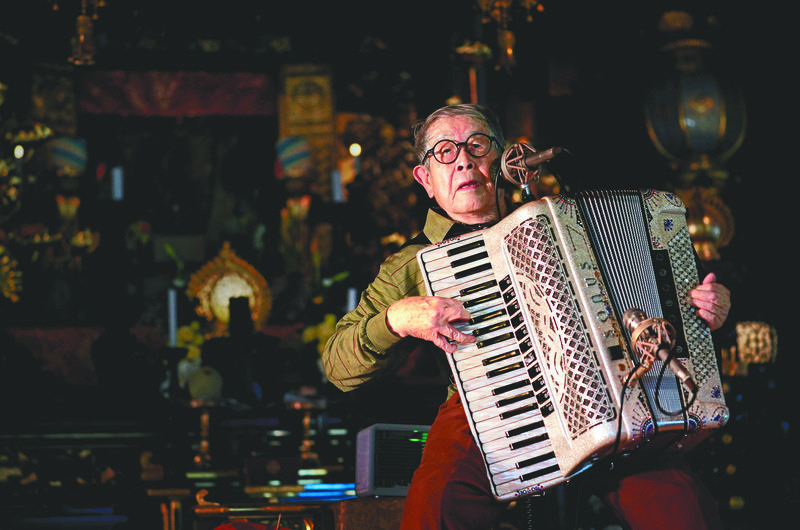 "Being alive was worse than being dead," Tanaka said while playing the accordion.