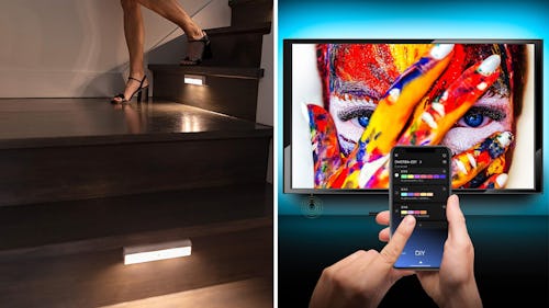 Create a cinematic effect from behind your TV or computer screen with this LED light strip that boasts color-changing capabilities. The 13.2-foot self-adhesive strip sticks to the back of your device and has multiple colors and brightness settings to choose from. Simply plug it into the USB port on your device and use the included remote or Bluetooth app to set the mood.