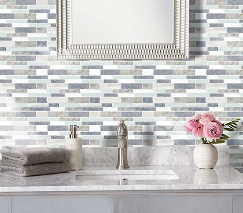 Easily update the look of your kitchen or bathroom with this peel-and-stick backsplash that can be installed over any smooth, finished surface. Each waterproof sheet has heat and moisture-resistant adhesive on the back to keep it in place, and the surface is a breeze to wipe clean as needed.