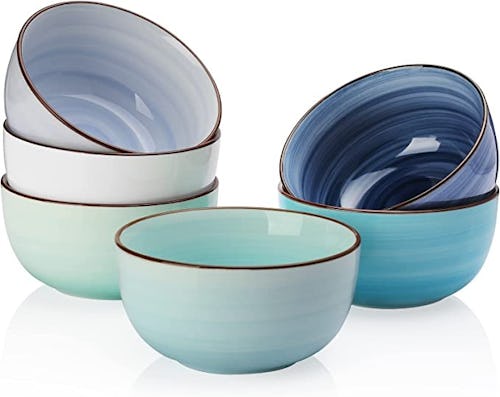Swap out your mismatched dessert dishes for this set of matching porcelain bowls in pretty colors. They’re crafted from lead-free and chip-resistant porcelain, and the 10-ounce capacity is a great size for ice cream, fruit, or snacks. The bowls are also microwave, dishwasher, and freezer-safe.