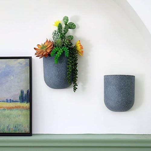 Hang some greenery or floral elements from your walls with this set of faux stone planters that have a flat back for easy hanging. The planters measure about 7 inches tall and have two hanging holes on the back for installation. Since they feature a closed design, they’re best for faux plants or ones that don’t require much water.