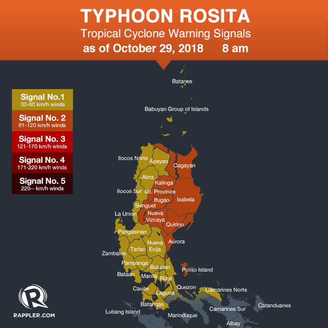 On Tuesday morning, October 30, Rosita could make landfall in the Isabela-Aurora area. (READ: FAST FACTS: Tropical cyclones, rainfall advisories)
