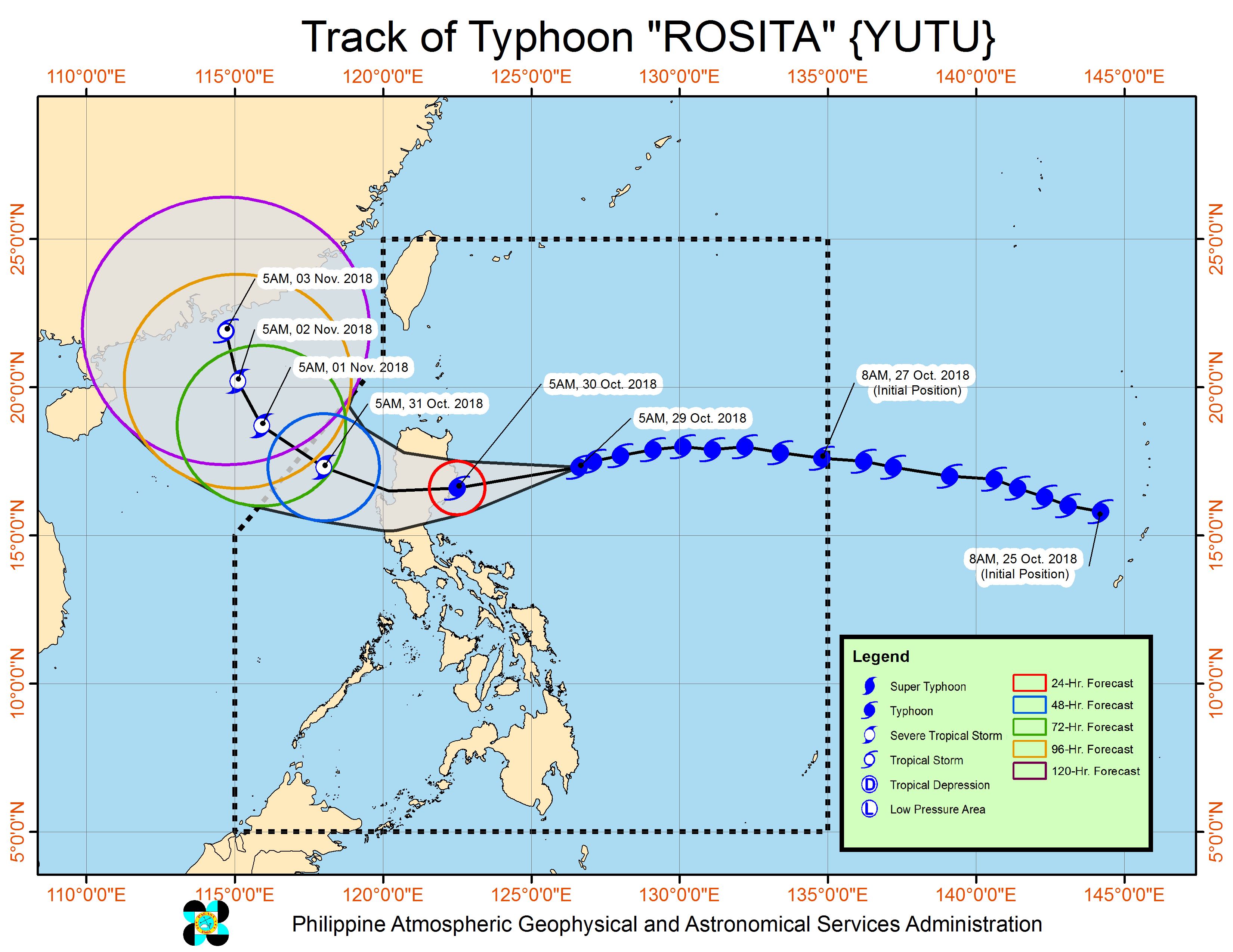 Based on Rosita's latest forecast track, it will leave the Philippine Area of Responsibility on Wednesday, October 31.