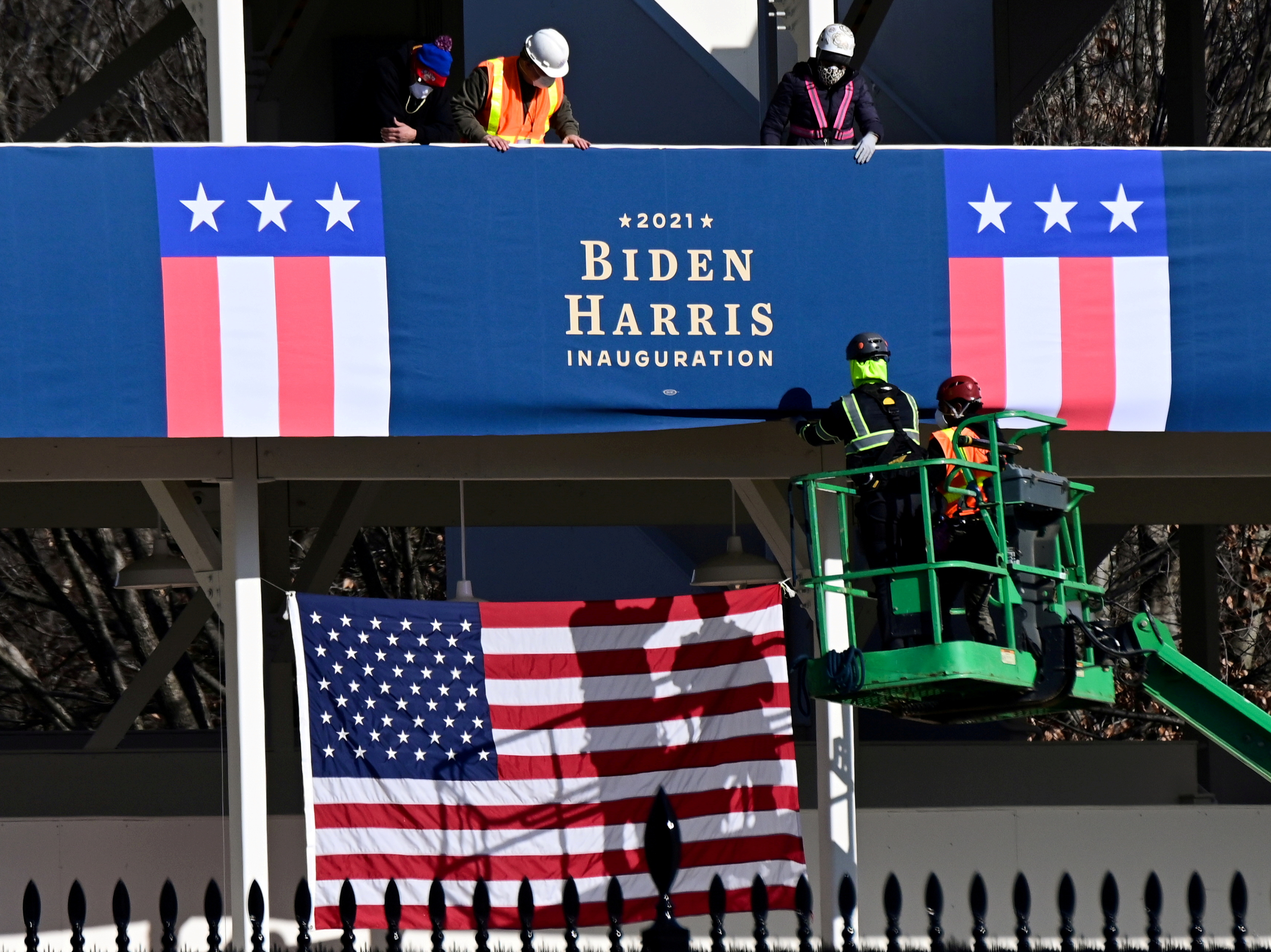 Banners declaring Joe Biden the next US president have started being put up outside of the White House, ahead of the president-elect’s inauguration on 20 January.