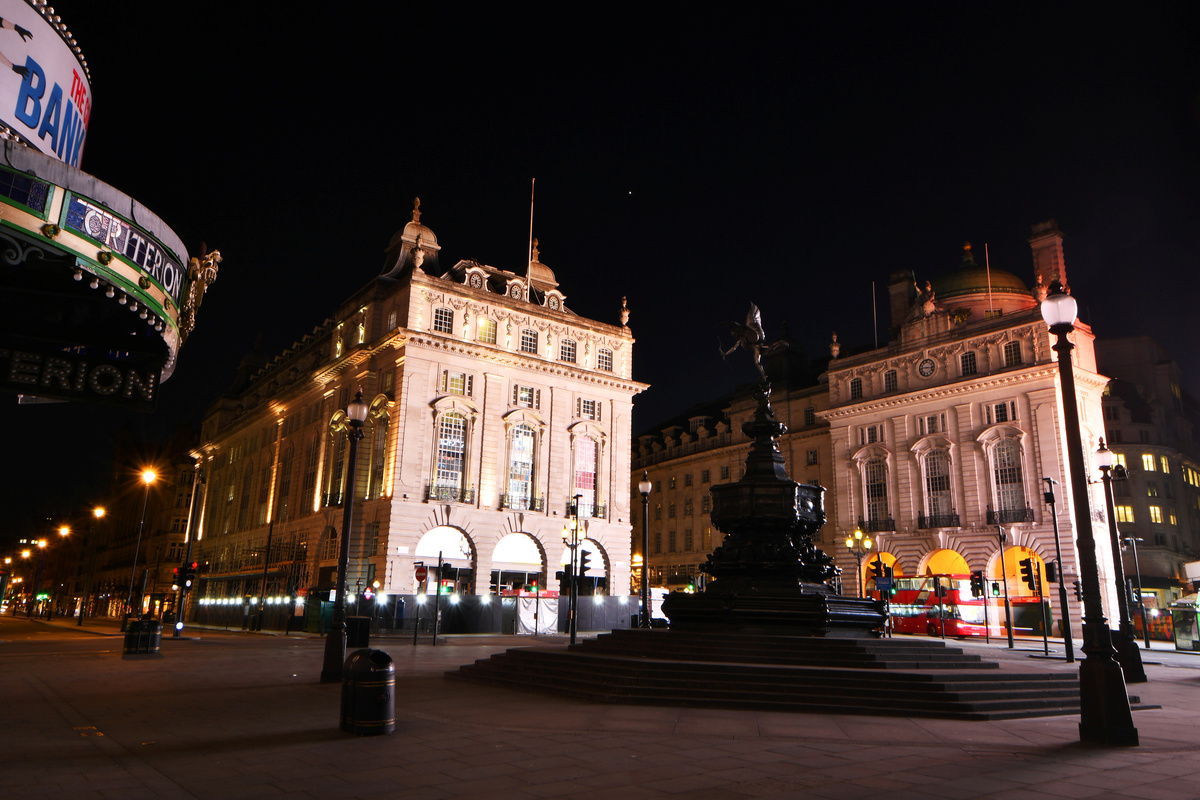 London at night is deserted as never before. The big screens of Piccadilly Circus flash at nothing but a few ducks from the nearby royal park waddling nonchalantly past the fountain pool.