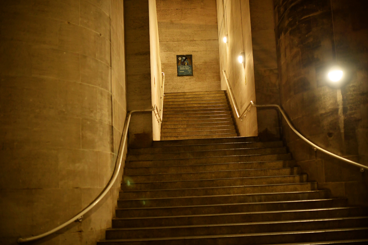 An empty stairwell is seen near a quiet Waterloo Bridge in the early hours, as the city at night is deserted like never before while the coronavirus disease (COVID-19) lockdown continues, in London, Britain April 22, 2020. Picture taken April 22, 2020. REUTERS/Dylan Martinez
