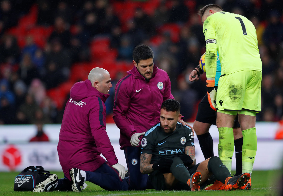 Soccer Football - Premier League - Stoke City vs Manchester City - bet365 Stadium, Stoke-on-Trent, Britain - March 12, 2018 Manchester City's Nicolas Otamendi receives medical attention after sustaining an injury Action Images via Reuters/Andrew Couldridge