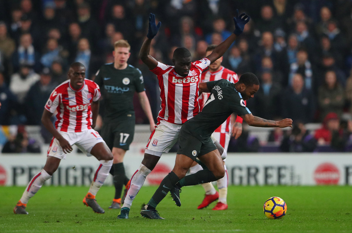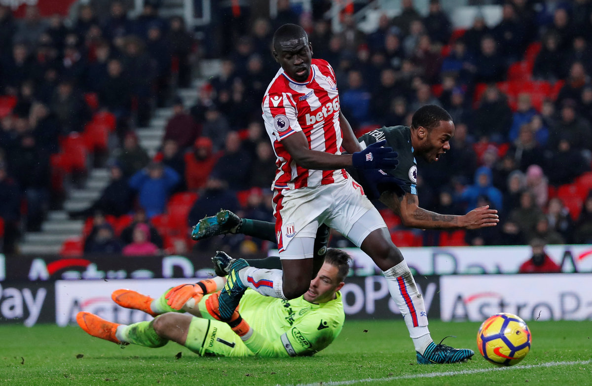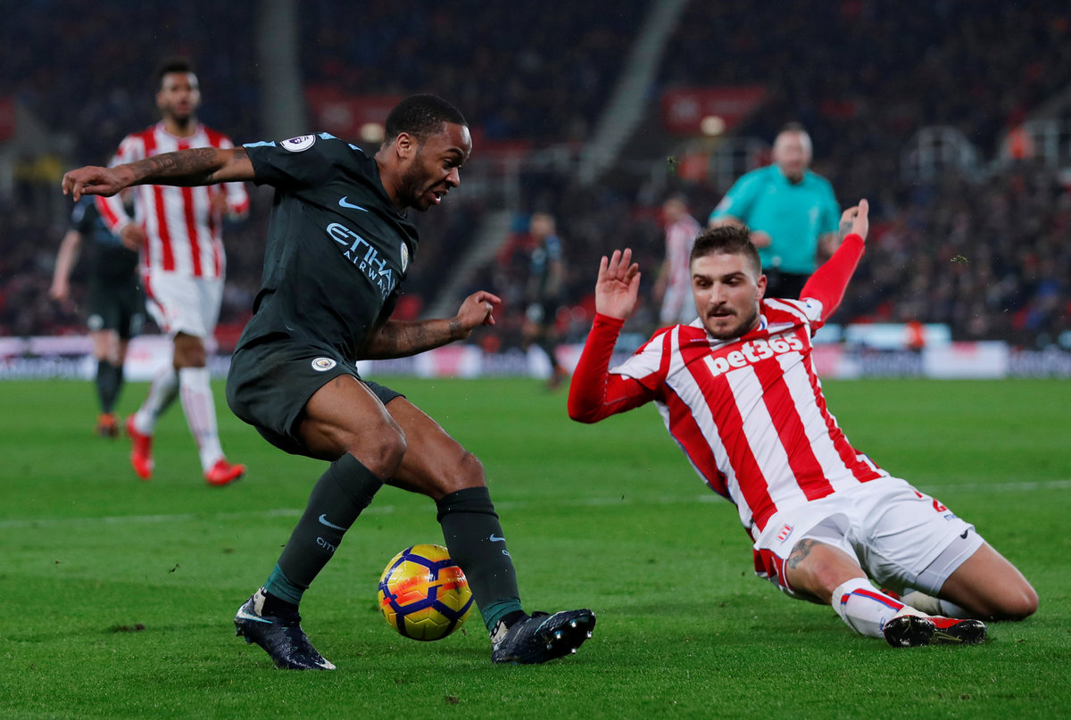 Soccer Football - Premier League - Stoke City vs Manchester City - bet365 Stadium, Stoke-on-Trent, Britain - March 12, 2018 Manchester City's Raheem Sterling in action with Stoke City's Papa Ndiaye Action Images via Reuters/Andrew Couldridge