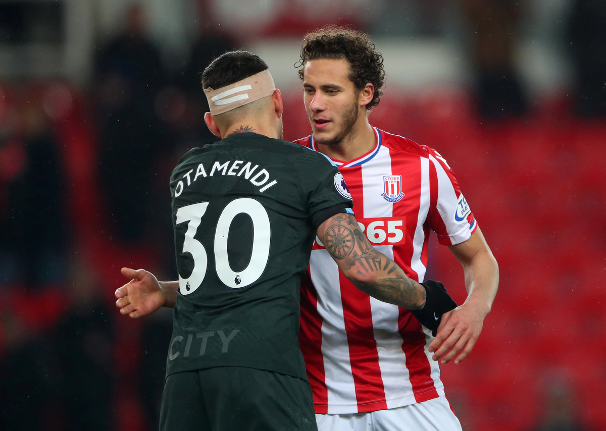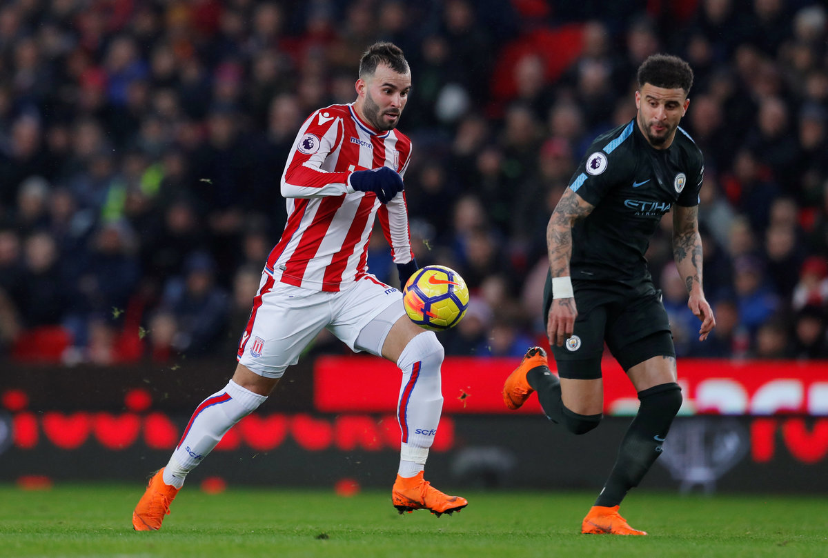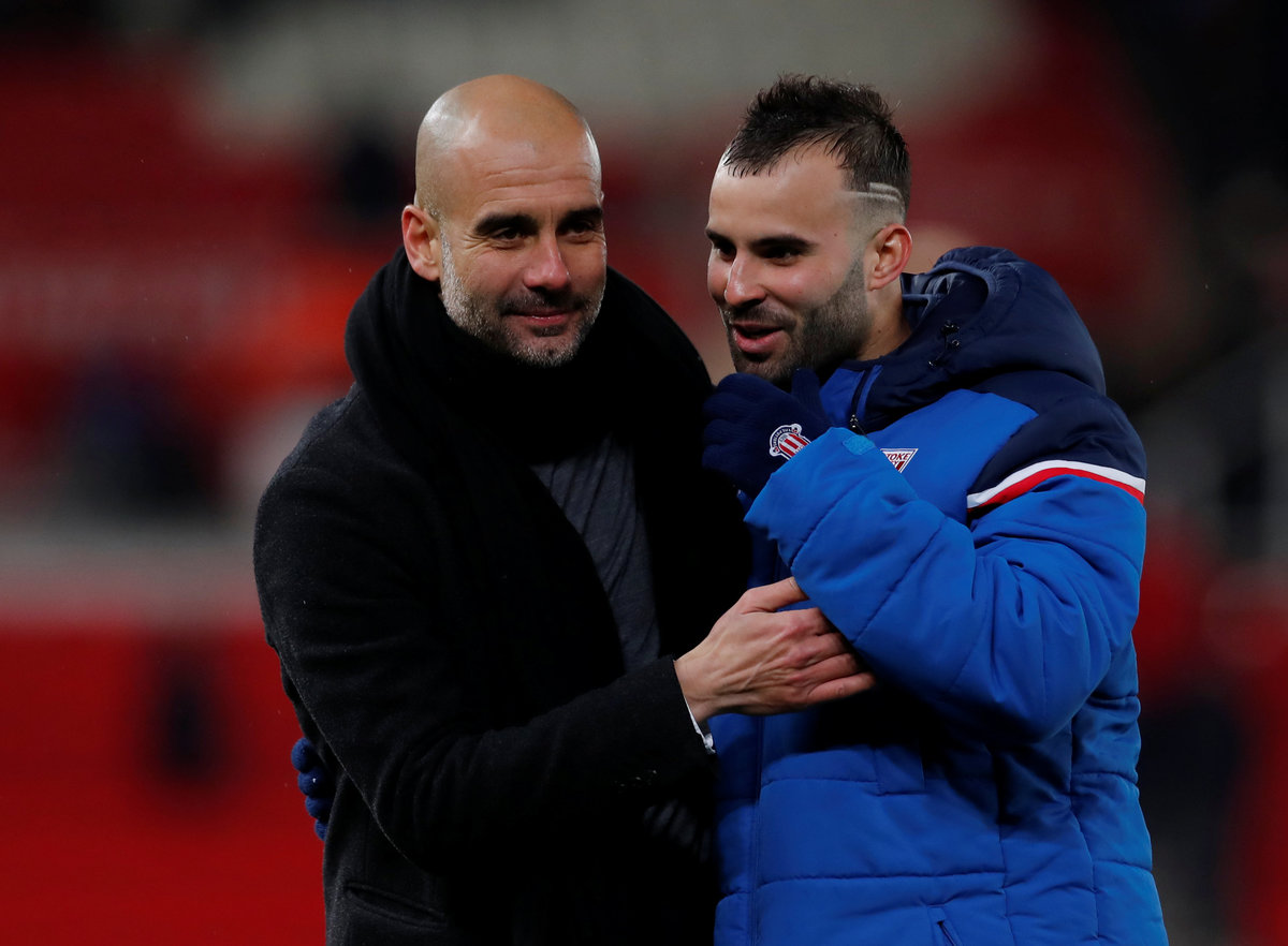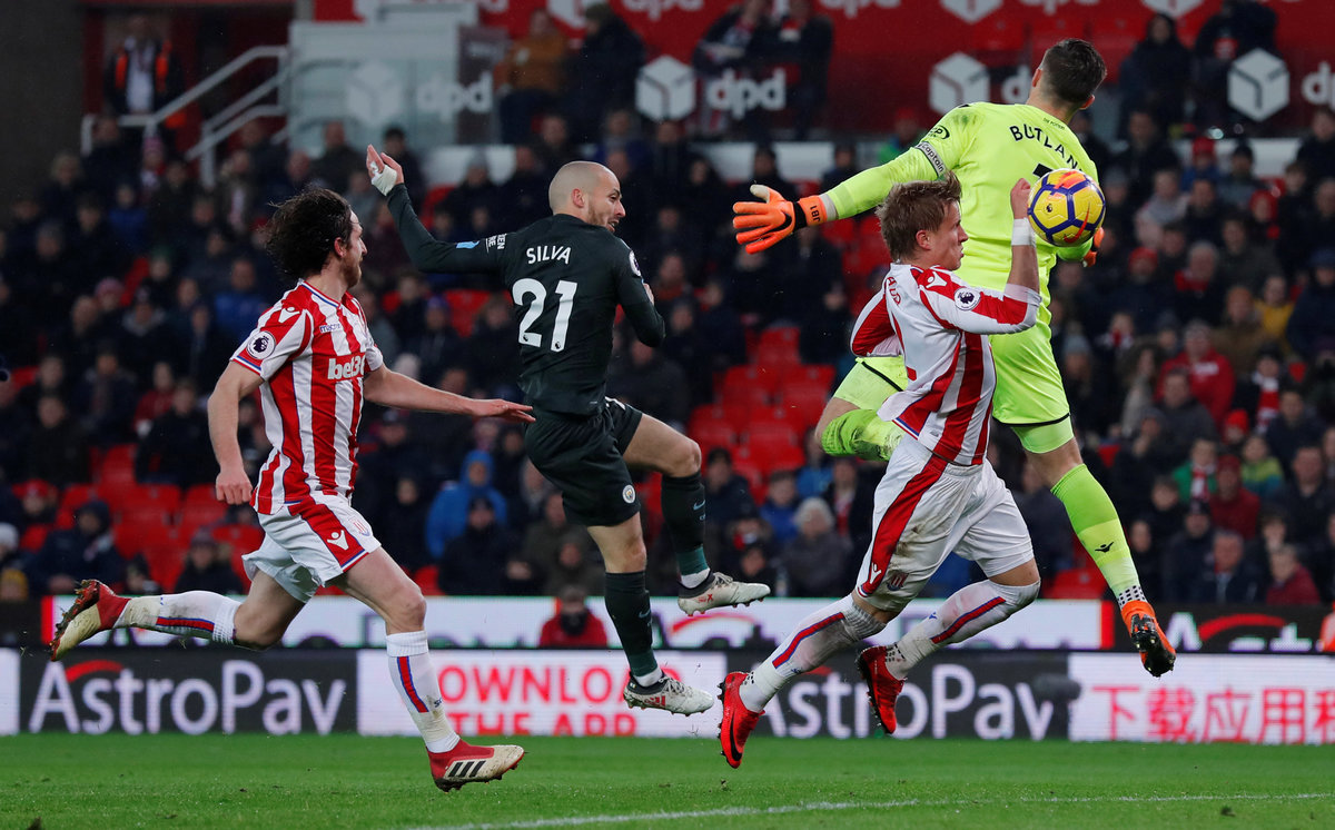Soccer Football - Premier League - Stoke City vs Manchester City - bet365 Stadium, Stoke-on-Trent, Britain - March 12, 2018 Stoke City's Jese in action with Manchester City's Kyle Walker Action Images via Reuters/Andrew Couldridge Soccer Football - Premier League - Stoke City vs Manchester City - bet365 Stadium, Stoke-on-Trent, Britain - March 12, 2018 Manchester City's Nicolas Otamendi and Stoke City's Ramadan Sobhi after the match REUTERS/Hannah McKay Soccer Football - Premier League - Stoke City vs Manchester City - bet365 Stadium, Stoke-on-Trent, Britain - March 12, 2018 Manchester City's Raheem Sterling looks dejected after a missed chance REUTERS/Hannah McKay Soccer Football - Premier League - Stoke City vs Manchester City - bet365 Stadium, Stoke-on-Trent, Britain - March 12, 2018 Manchester City manager Pep Guardiola with Stoke City's Jese after the match Action Images via Reuters/Andrew Couldridge Soccer Football - Premier League - Stoke City vs Manchester City - bet365 Stadium, Stoke-on-Trent, Britain - March 12, 2018 Manchester City's Ederson makes a save REUTERS/Hannah McKay Soccer Football - Premier League - Stoke City vs Manchester City - bet365 Stadium, Stoke-on-Trent, Britain - March 12, 2018 Stoke City's Papa Ndiaye in action with Manchester City's Raheem Sterling REUTERS/Hannah McKay Soccer Football - Premier League - Stoke City vs Manchester City - bet365 Stadium, Stoke-on-Trent, Britain - March 12, 2018 Manchester City's Kevin De Bruyne in action with Stoke City's Papa Ndiaye REUTERS/Hannah McKay Soccer Football - Premier League - Stoke City vs Manchester City - bet365 Stadium, Stoke-on-Trent, Britain - March 12, 2018 Manchester City's David Silva scores their second goal Action Images via Reuters/Andrew Couldridge Soccer Football - Premier League - Stoke City vs Manchester City - bet365 Stadium, Stoke-on-Trent, Britain - March 12, 2018 Manchester City's Kevin De Bruyne shoots at goal REUTERS/Hannah McKay Soccer Football - Premier League - Stoke City vs Manchester City - bet365 Stadium, Stoke-on-Trent, Britain - March 12, 2018 Manchester City's David Silva celebrates scoring their second goal with team mates Action Images via Reuters/Andrew Couldridge Soccer Football - Premier League - Stoke City vs Manchester City - bet365 Stadium, Stoke-on-Trent, Britain - March 12, 2018 Stoke City manager Paul Lambert REUTERS/Hannah McKay Soccer Football - Premier League - Stoke City vs Manchester City - bet365 Stadium, Stoke-on-Trent, Britain - March 12, 2018 Manchester City's David Silva celebrates scoring their first goal with team mates REUTERS/Hannah McKay Soccer Football - Premier League - Stoke City vs Manchester City - bet365 Stadium, Stoke-on-Trent, Britain - March 12, 2018 Manchester City's David Silva in action with Stoke City's Joe Allen and Moritz Bauer REUTERS/Hannah McKay