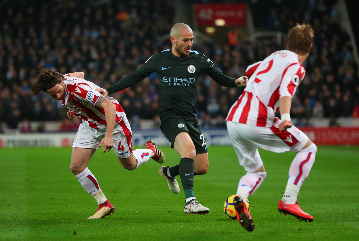 Soccer Football - Premier League - Stoke City vs Manchester City - bet365 Stadium, Stoke-on-Trent, Britain - March 12, 2018 Manchester City's David Silva scores their first goal REUTERS/Hannah McKay