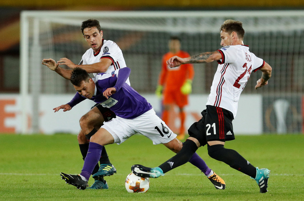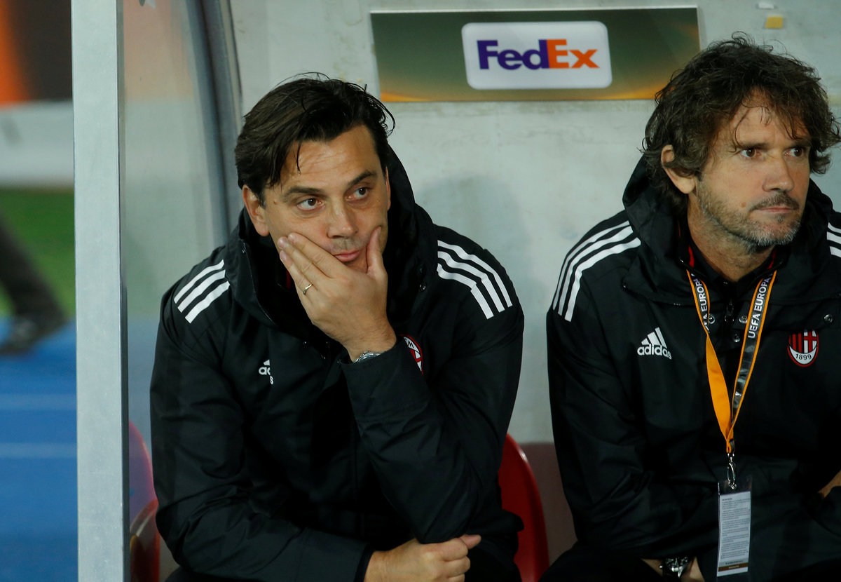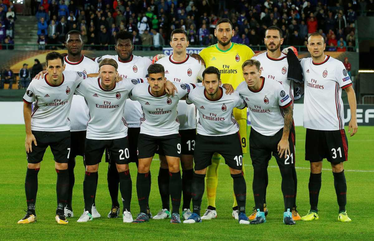 Soccer Football - Europa League - FK Austria Wien vs AC Milan - Austria Arena, Vienna, Austria - September 14, 2017 AC Milan coach Vincenzo Montella REUTERS/Heinz-Peter BaderSoccer Football - Europa League - FK Austria Wien vs AC Milan - Austria Arena, Vienna, Austria - September 14, 2017 AC Milan's Hakan Calhanoglu celebrates a goal REUTERS/Heinz-Peter BaderSoccer Football - Europa League - FK Austria Wien vs AC Milan - Austria Arena, Vienna, Austria - September 14, 2017 AC Milan's Hakan Calhanoglu celebrates scoring their first goal REUTERS/Heinz-Peter BaderSoccer Football - Europa League - FK Austria Wien vs AC Milan - Austria Arena, Vienna, Austria - September 14, 2017 AC Milan's Luca Antonelli in action with Austria Vienna's Abdul Kadiri Mohammed REUTERS/Heinz-Peter BaderSoccer Football - Europa League - FK Austria Wien vs AC Milan - Austria Arena, Vienna, Austria - September 14, 2017 AC Milan pose for a team group photo before the match REUTERS/Heinz-Peter BaderSoccer Football - Europa League - FK Austria Wien vs AC Milan - Austria Arena, Vienna, Austria - September 14, 2017 FK Austria Wien fans REUTERS/Heinz-Peter Bader
