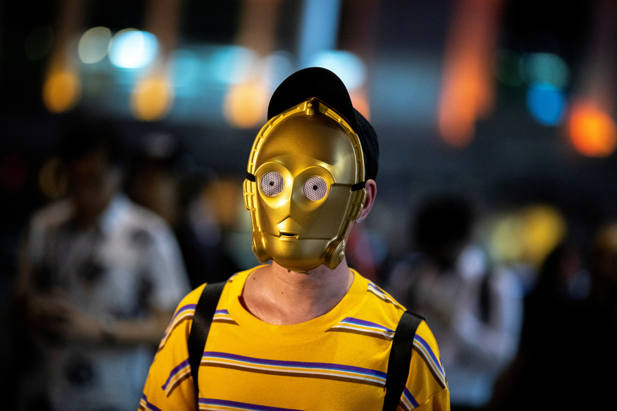 Some protest marchers on Saturday covered their faces with photocopies of the Chinese president's face, others with "V for Vendetta" Guy Fawkes masks, and a group of protesters plan a "face mask party" on Saturday night.