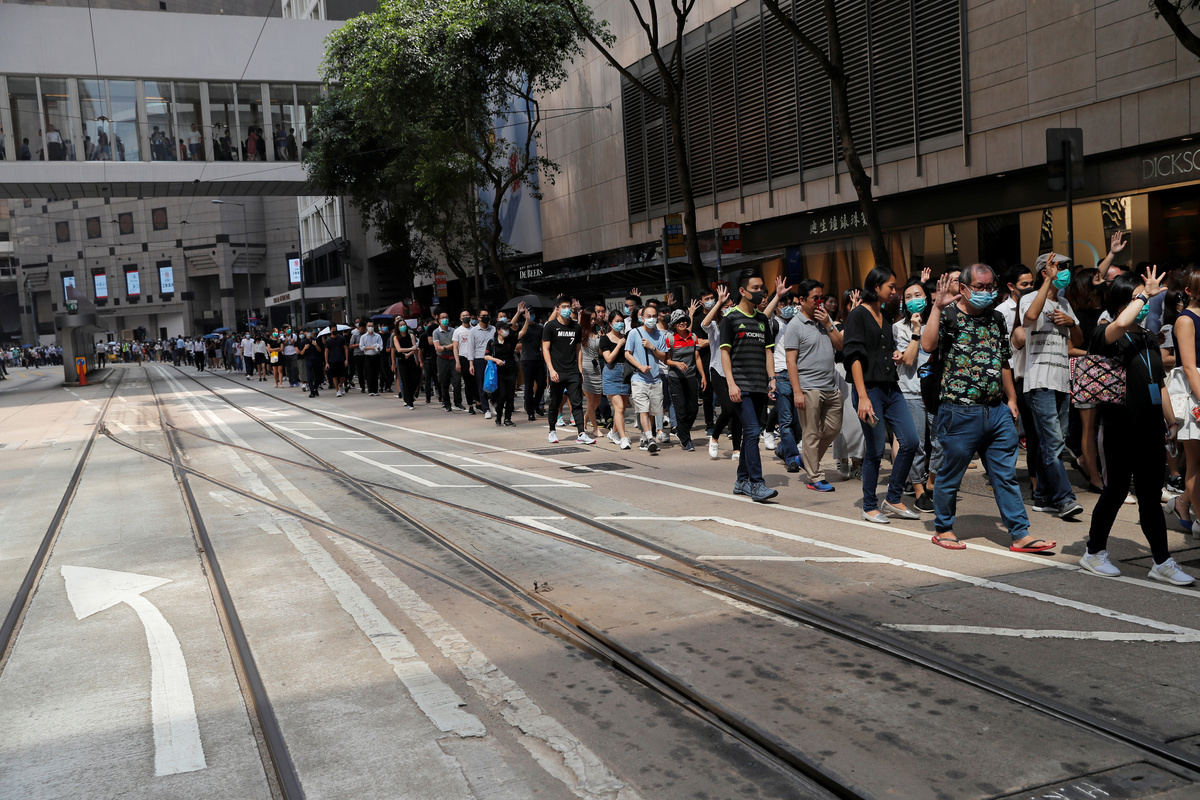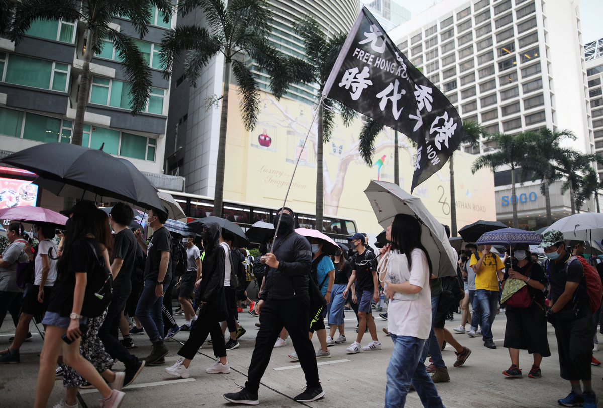 Hundreds of protesters, many young and wearing face masks, were marching in Kowloon at the time and were headed to a district near the Kowloon Tong station.