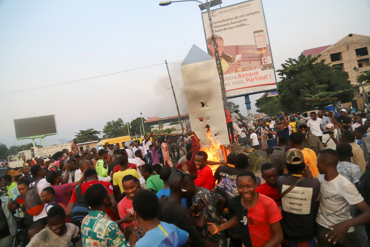 The latest in a series of mystery monoliths to capture the imagination of science-fiction fans around the world met a fiery end in the Democratic Republic of Congo on Wednesday when it was torched at a roundabout in the capital.