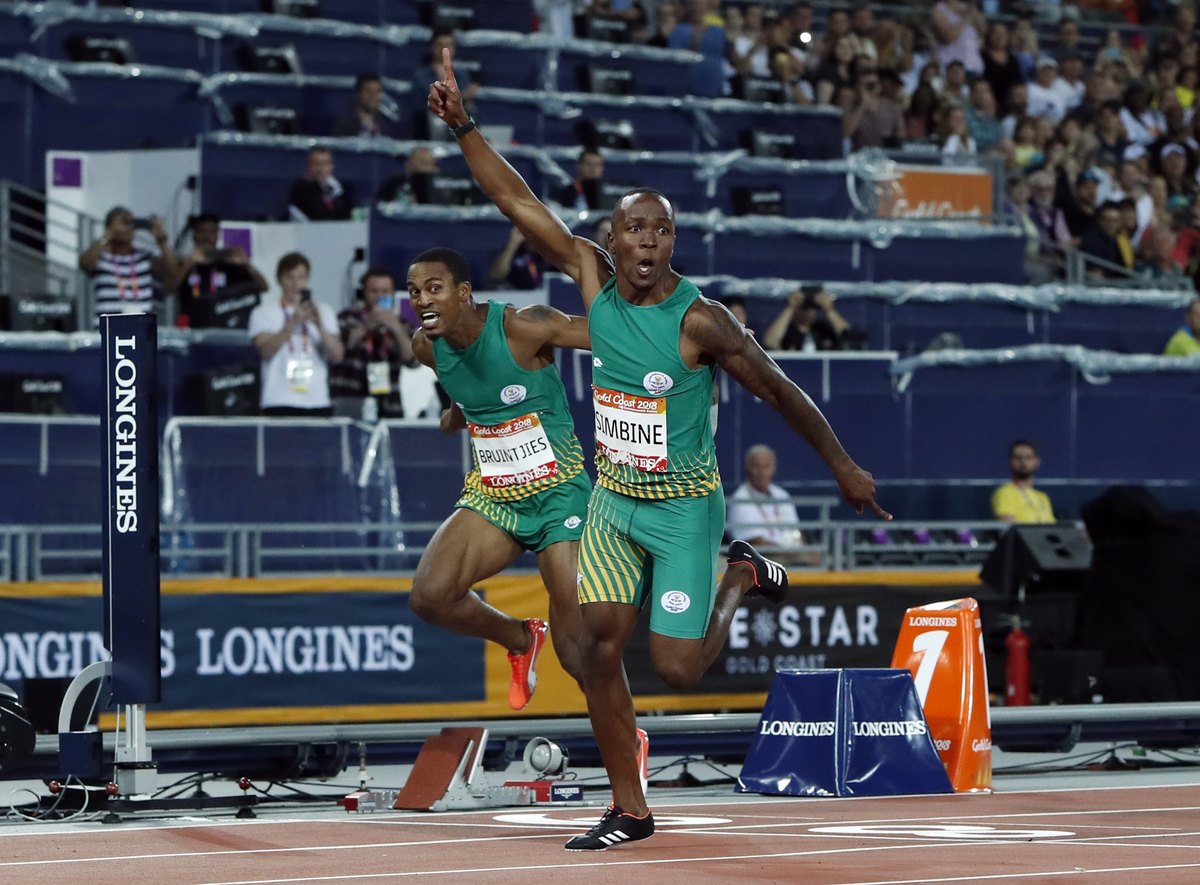 With a heaving crowd at Carrara Stadium roaring, Rio Olympic finalist Simbine blazed away after Blake botched his start, and crossed the line in 10.03 seconds, leading a South African one-two with team mate Henricho Bruintjies.