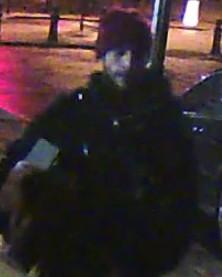 The suspect is described as around 5ft 10ins, slim, wearing a dark jacket, dark trousers and a red woolly hat.