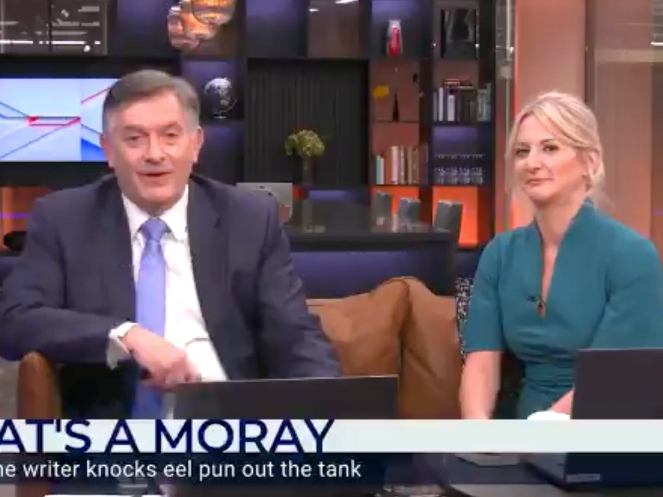 Discussing the NTY headline was veteran newsreader Simon McCoy who made a habit of being thoroughly unimpressed by stories during his time on the BBC. That wasn’t the case this time though, as he was compelled to sing the headline, which is an obvious homage to Dean Martin’s ‘That’s Amore.’