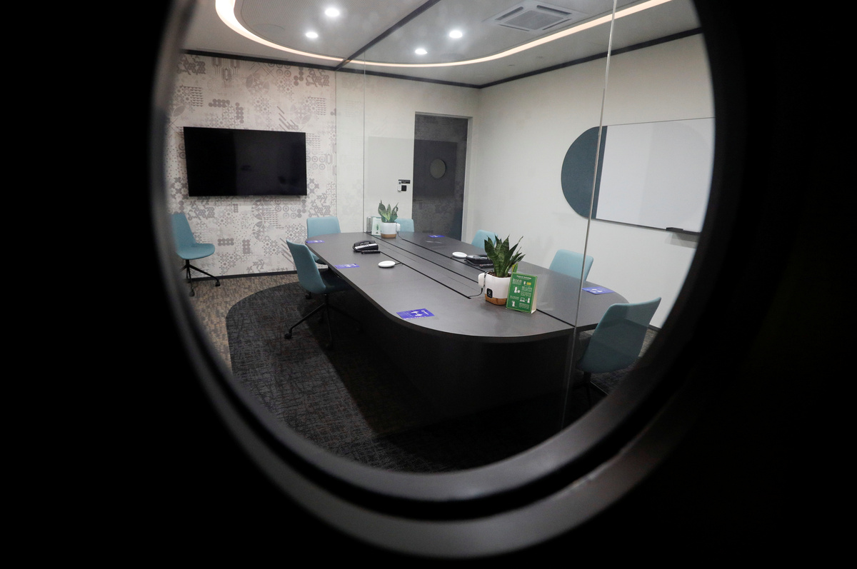 The hotel has meeting rooms outfitted with airtight glass panels to reduce the risk of transmission and even has a special compartment with an ultraviolet light to sanitise documents so they can be shared between participants.