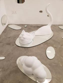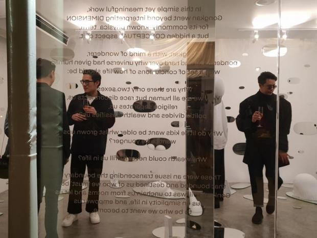 Inside the gallery, works by Thai artist Gongkan are being showcased. His "Another Dimension" exhibition features simple white sculptures reflected in mirrors to examine social boundaries and norms that dictate our lives. Gongkan is based in New York and Bangkok. He is known for his "teleport" art works, which sees people and objects appearing from holes. This is his first exhibition in Singapore, and it will be on display until the end of March.