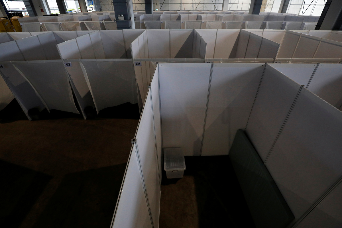 View of a new isolation facility set up for testing the coronavirus disease (COVID-19) on migrant workers residing in dormitories, in Singapore May 10, 2020. REUTERS/Edgar Su