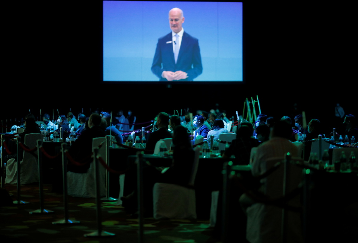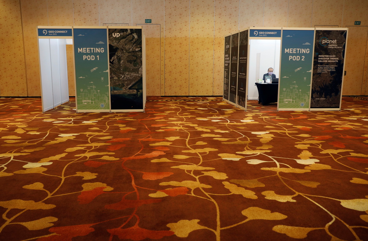 The event "GEO Connect Asia 2021" is also using meeting pods with transparent screens to separate participants, while speakers, venue staff and some delegates of the conference are required to undergo on-site antigen rapid tests.