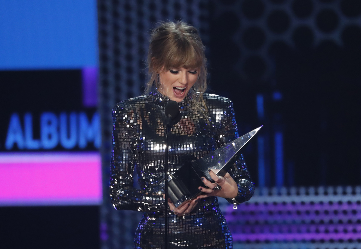Swift on Tuesday won four awards, including artist of the year, at the American Music Awards in Los Angeles and again urged fans to vote, but without declaring any party interest.