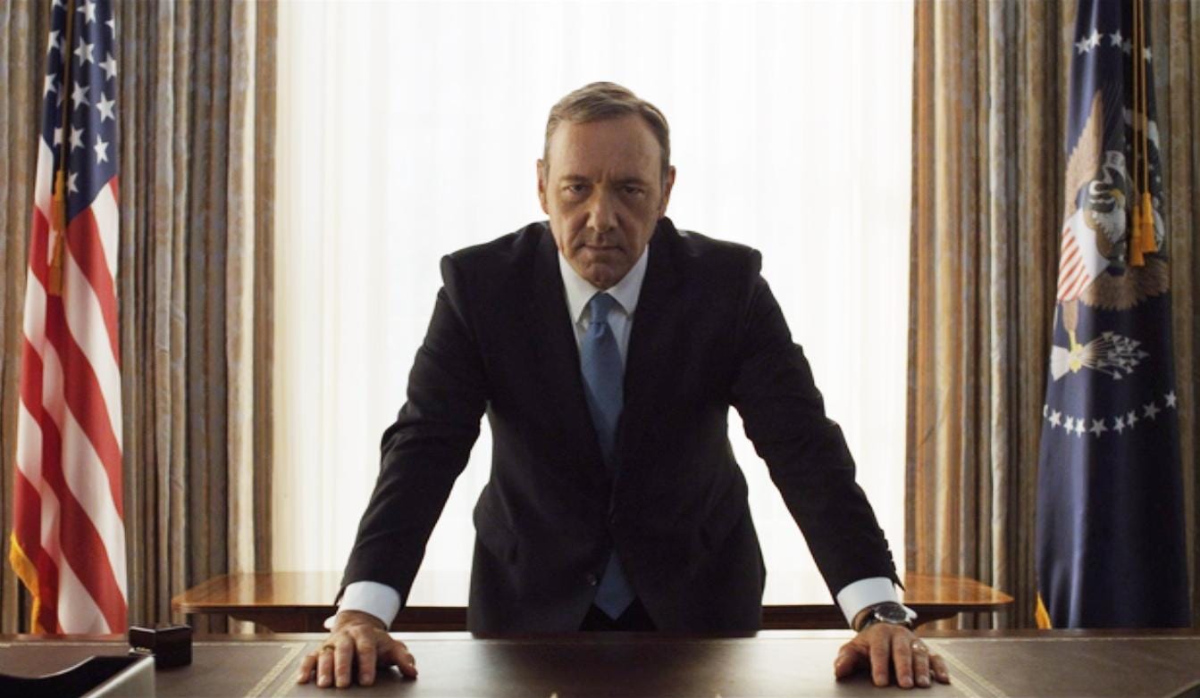 "Good evening to the people of China, I am the 45th president of the United States, Frank J. Underwood," Kevin Spacey says from behind the white house desk.