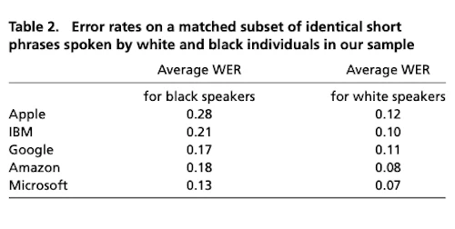 In this case, researchers put technology from Apple, Google, Amazon, IBM, and Microsoft to the test, revealing staggering differences in error rates when comparing the results based on black versus white speakers. These systems misunderstood black speakers an average of 35 percent of the time, while the figure sits at just 19 percent for white speakers.