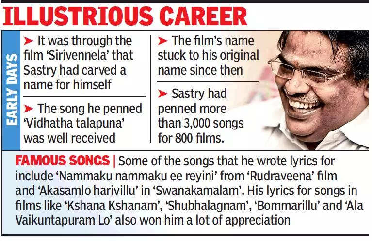 It was through the film ‘Sirivennela’ directed by K Vishwanath that Sastry had carved a name for himself in Telugu film world and the song that he penned ‘Vidhatha talapuna’ was well received. The film’s name stuck to his original name since then. Sastry had penned more than 3,000 songs for 800 films.