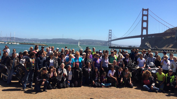 The breezy bayside air filled with cheers when the last riders rolled up and got into place for the portrait. More than 200 women, and a handful of men, whooped and hollered and raised their fists in the air: "We did it! We did it! We did it!"