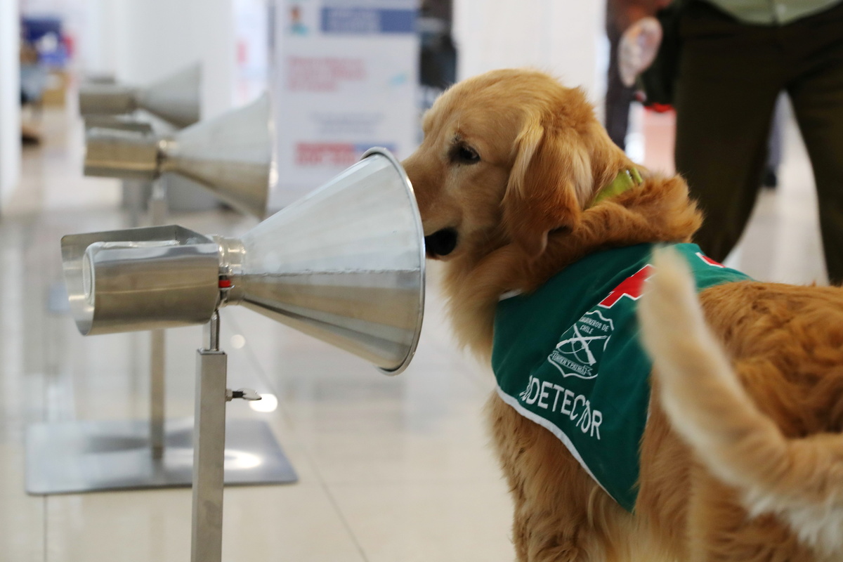 Chile's Carabinero police trained the dogs and Inspector General Esteban Diaz said dogs have more than 3 million olfactory receptors, more than 50 times those of humans, so were uniquely placed to help fight the coronavirus.