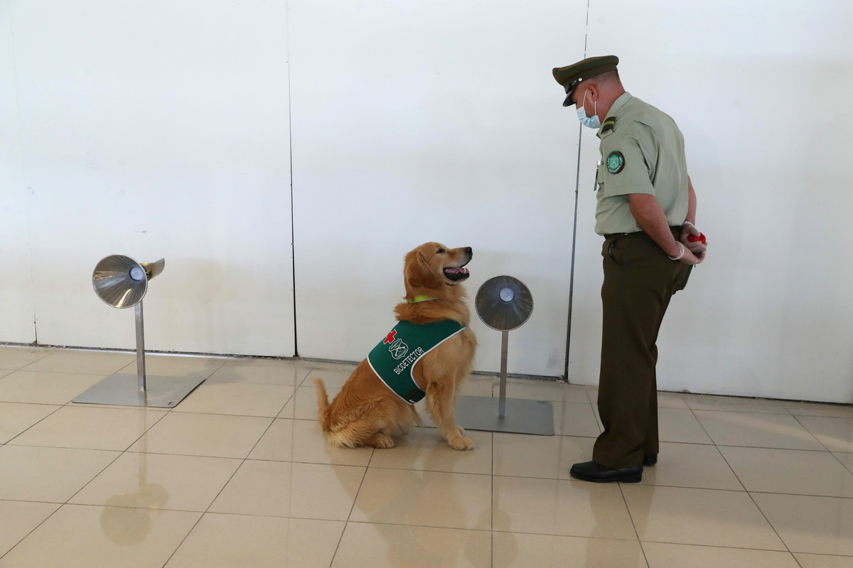 The task of sniffing out passengers infected with COVID-19 at Chile's Santiago international airport is going to the dogs.