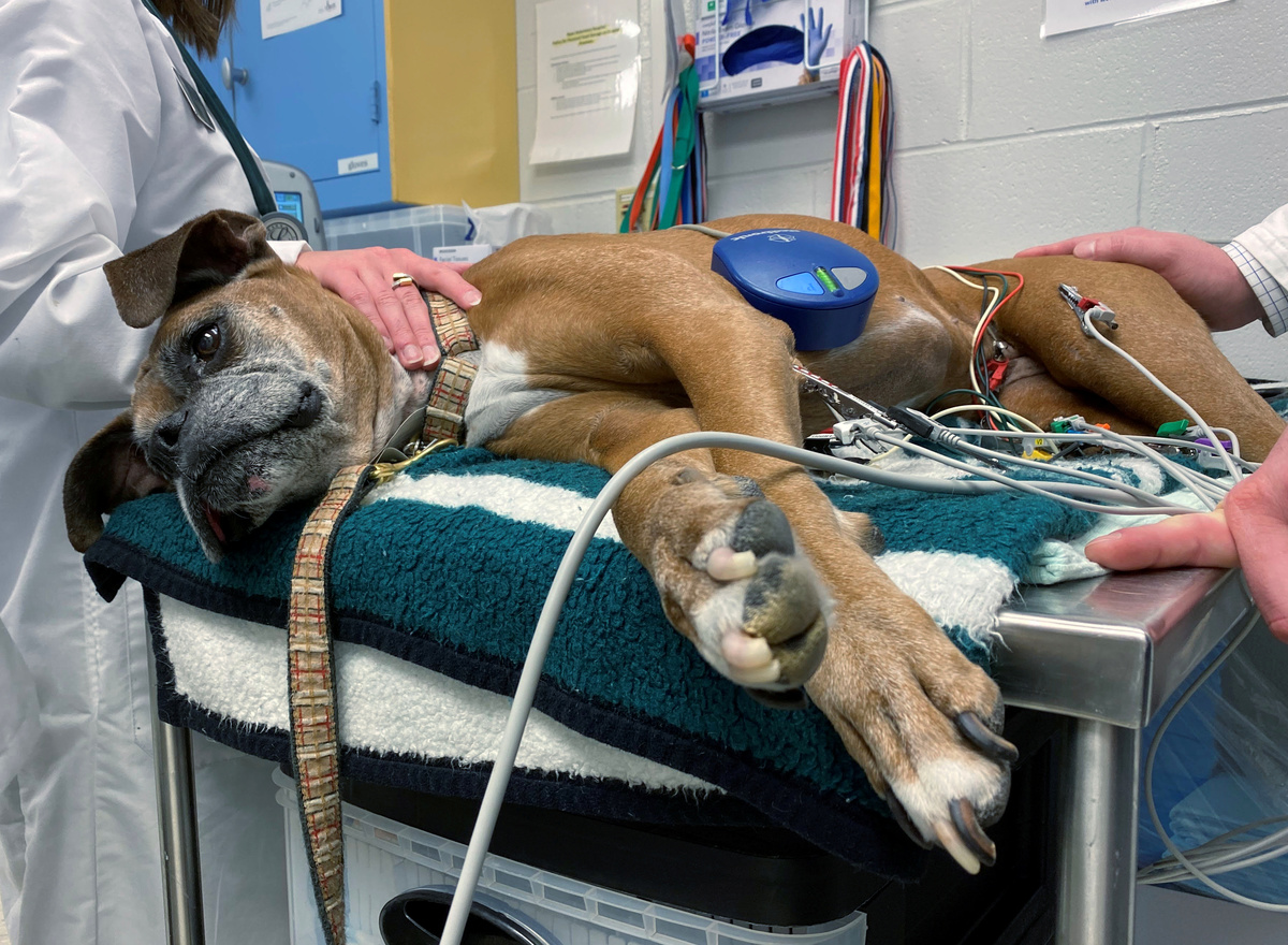 As the 9-year-old boxer lay on a metal table, Gelzer tried to push up her heart rate as part of a stress test following the procedure in August - a ventricular ablation for an arrhythmia, or irregular heartbeat, the first performed on a dog in the United States.