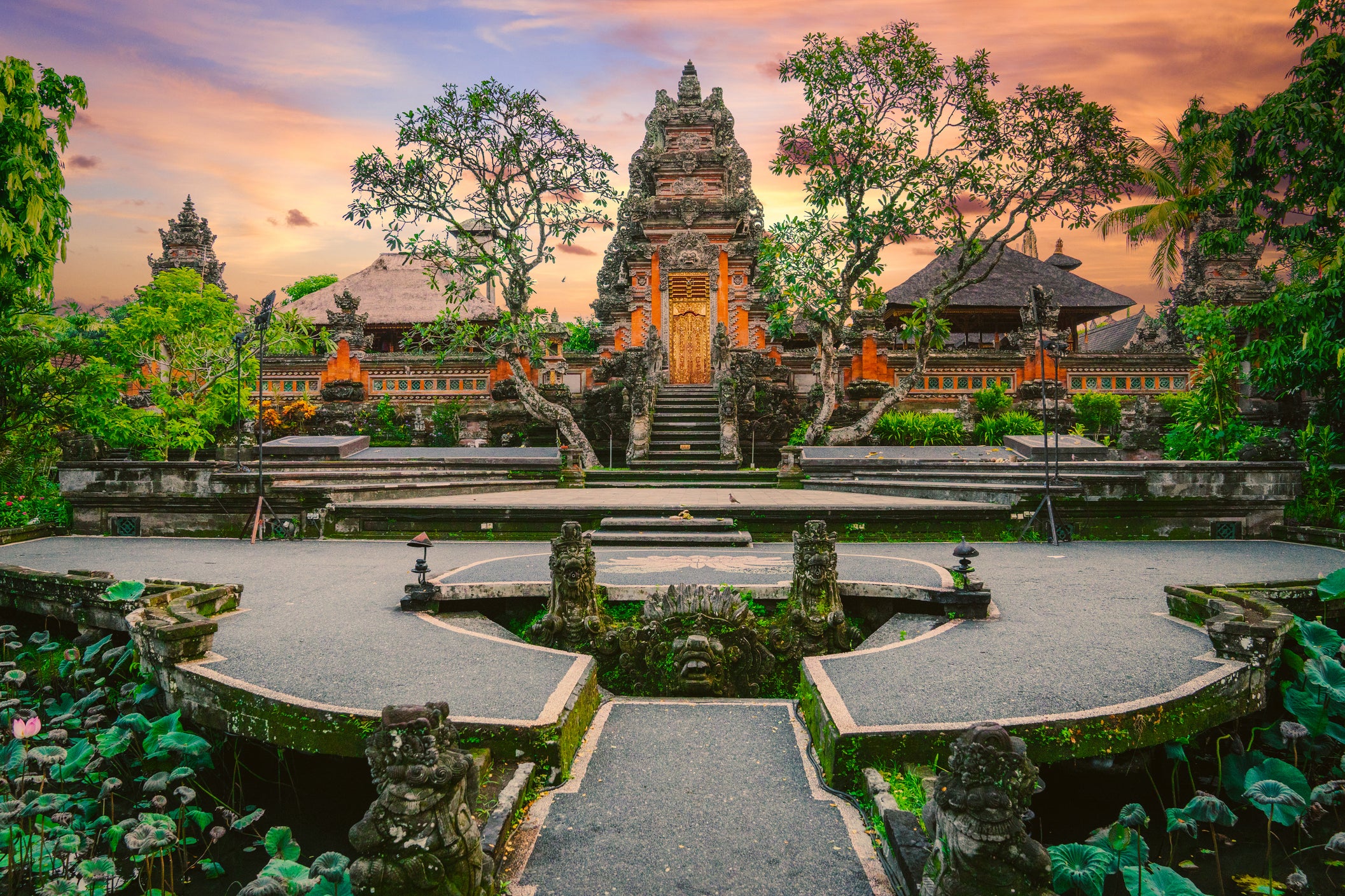 The scenic views of locations like the Tegalallang rice terraces or Tegenungan waterfall are complemented by several manmade attractions. Among them are the Saraswati Temple and Ubud Palace, surrounded by tall trees and giant lotus ponds.