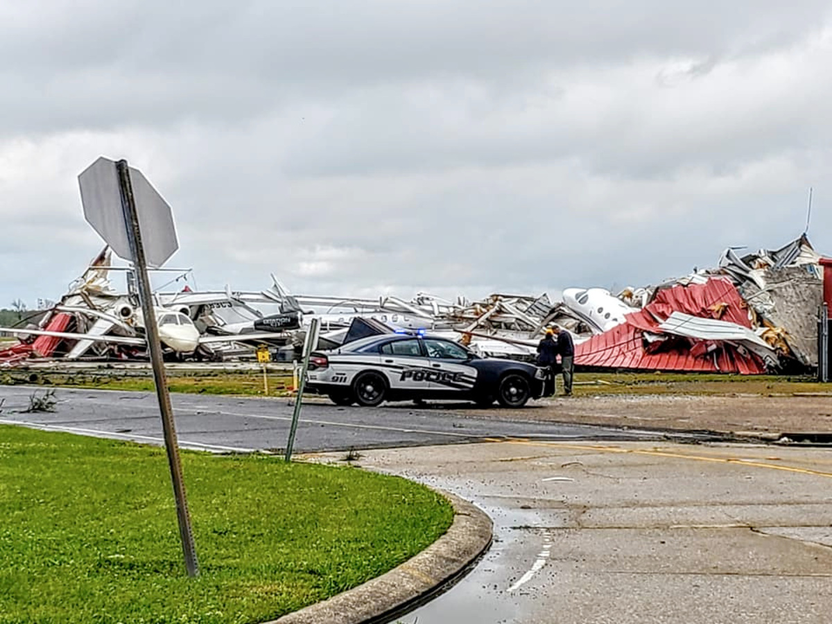 The city of Monroe, Louisiana, posted photos of wrecked buildings on social media and said that Monroe Regional Airport had canceled all flights until further notice due to debris on the runway and weather conditions.