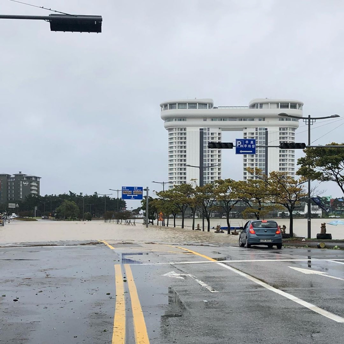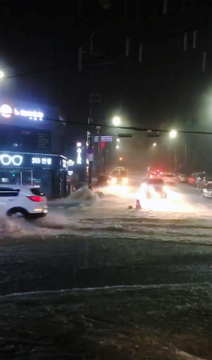 A road is partially submerged in water after Typhoon Mitag brought heavy rain and flood to Gangneung, South Korea, October 3, 2019, in this photo obtained from social media. @DIBIDIBOB/via REUTERS A road is partially submerged in water after Typhoon Mitag brought heavy rain and flood to Gangneung, South Korea, October 3, 2019, in this photo obtained from social media. @DIBIDIBOB/via REUTERS Vehicles drive as floodwaters flow on a street in Changwon, South Korea October 2, 2019 in this picture obtained from social media video on September 3, 2019. INSTAGRAM @AO.EO.AEO/via REUTERS