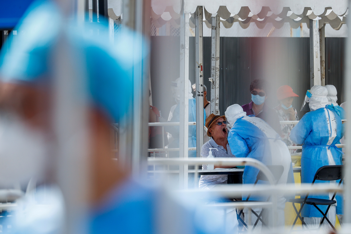 Medical workers conduct nucleic acid tests at a temporary testing site after a new outbreak of the coronavirus disease (COVID-19) in Beijing, China June 30, 2020. REUTERS/Thomas Peter