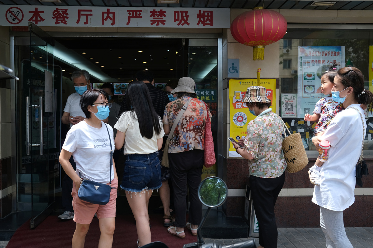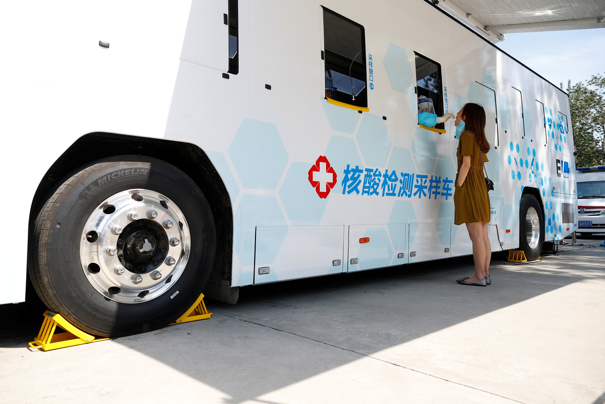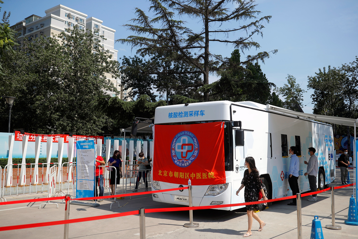 People line up to receive nucleic acid tests at a temporary testing site after a new outbreak of the coronavirus disease (COVID-19) in Beijing, China June 30, 2020. REUTERS/Thomas PeterA person is tested at the window of a testing vehicle, following a new outbreak of the coronavirus disease (COVID-19) in Beijing, China, June 30, 2020. REUTERS/Thomas PeterPeople line up to receive a nucleic acid test at a testing vehicle, following a new outbreak of the coronavirus disease (COVID-19) in Beijing, China, June 30, 2020. REUTERS/Thomas PeterA Meituan delivery worker wearing a face mask crosses a street, following the coronavirus disease (COVID-19) outbreak, in Beijing's central business area, China June 30, 2020. REUTERS/Tingshu WangCustomers wearing face masks line up to enter a restaurant, following the coronavirus disease (COVID-19) outbreak, in Beijing, China June 30, 2020. REUTERS/Tingshu WangPeople are tested at a testing vehicle, as another people line up to receive a nucleic acid test, following a new outbreak of the coronavirus disease (COVID-19) in Beijing, China, June 30, 2020. REUTERS/Thomas PeterPeople wearing face masks walk on a street, following the outbreak of the coronavirus disease (COVID-19), in Beijing, China June 30, 2020. REUTERS/Tingshu WangPeople wearing face masks are seen on a street, following the outbreak of the coronavirus disease (COVID-19), in Beijing, China June 30, 2020. REUTERS/Tingshu WangA Meituan delivery worker wearing a face mask crosses a street, following the coronavirus disease (COVID-19) outbreak, in Beijing's central business area, China June 30, 2020. REUTERS/Tingshu WangA woman wearing a face mask holds an umbrella as she walks on an overpass, following the outbreak of the coronavirus disease (COVID-19), in Beijing, China June 30, 2020. REUTERS/Tingshu Wang