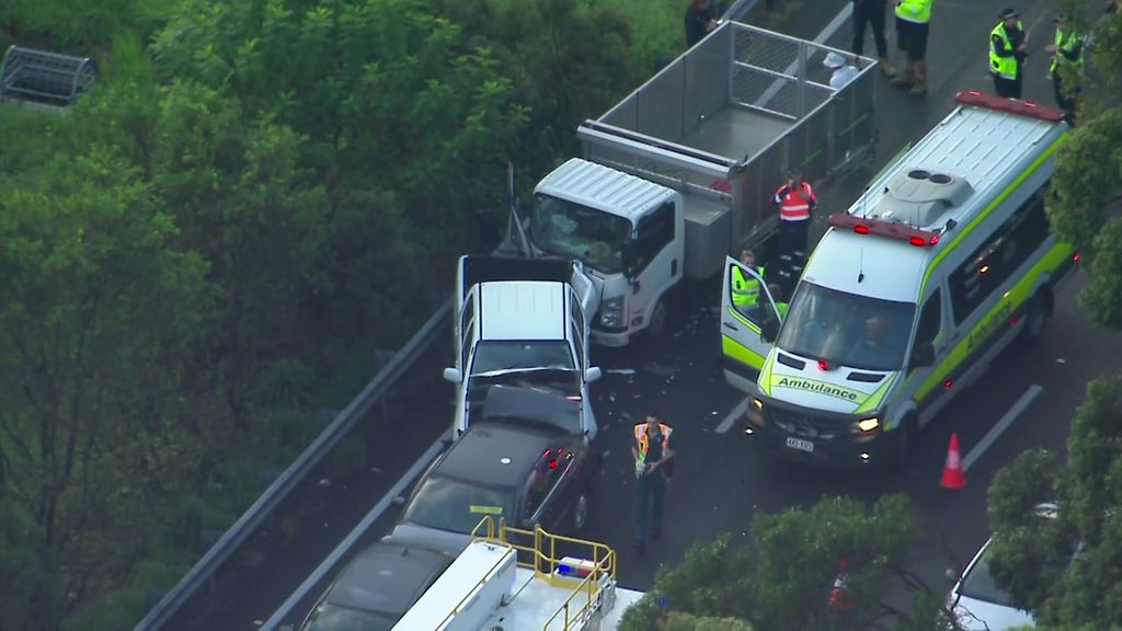 The crash occurred about 6am in northbound lanes near the Juliette Street off ramp on the motorway at Greenslopes.