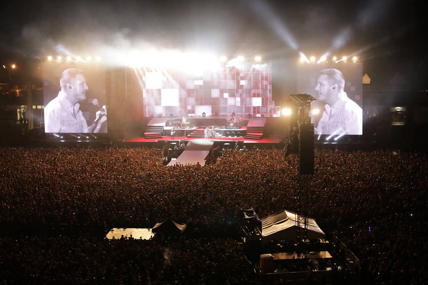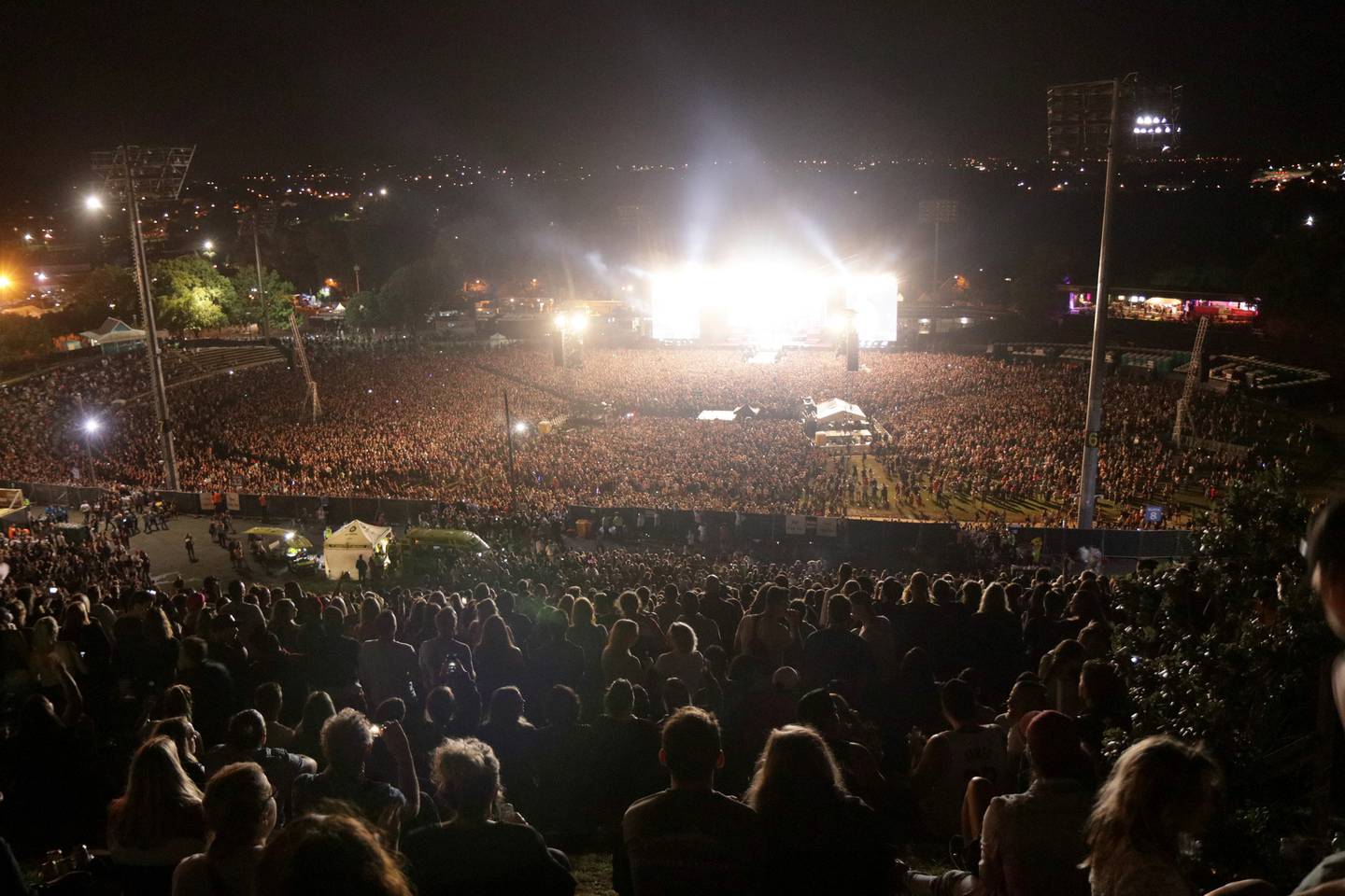 They were. They definitely were. With the event sold out since September, the stadium's 50,000 punters were crammed in everywhere: moshing in the front rows, swaying in the aisles, packing out the ground field, crammed shoulder to shoulder on the embankment, and rising up into the angled terraces as far as the eye could see.