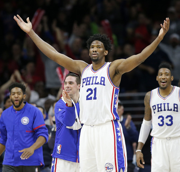 The 7-foot-2, 270-pound center scored his team's final four points and had clutch block with 22.9 seconds left. Embiid finished with a game-high 26 points, scoring 20 or more points for the 10th straight game. The rookie added nine rebounds, two assists, one steal and two blocked shots.