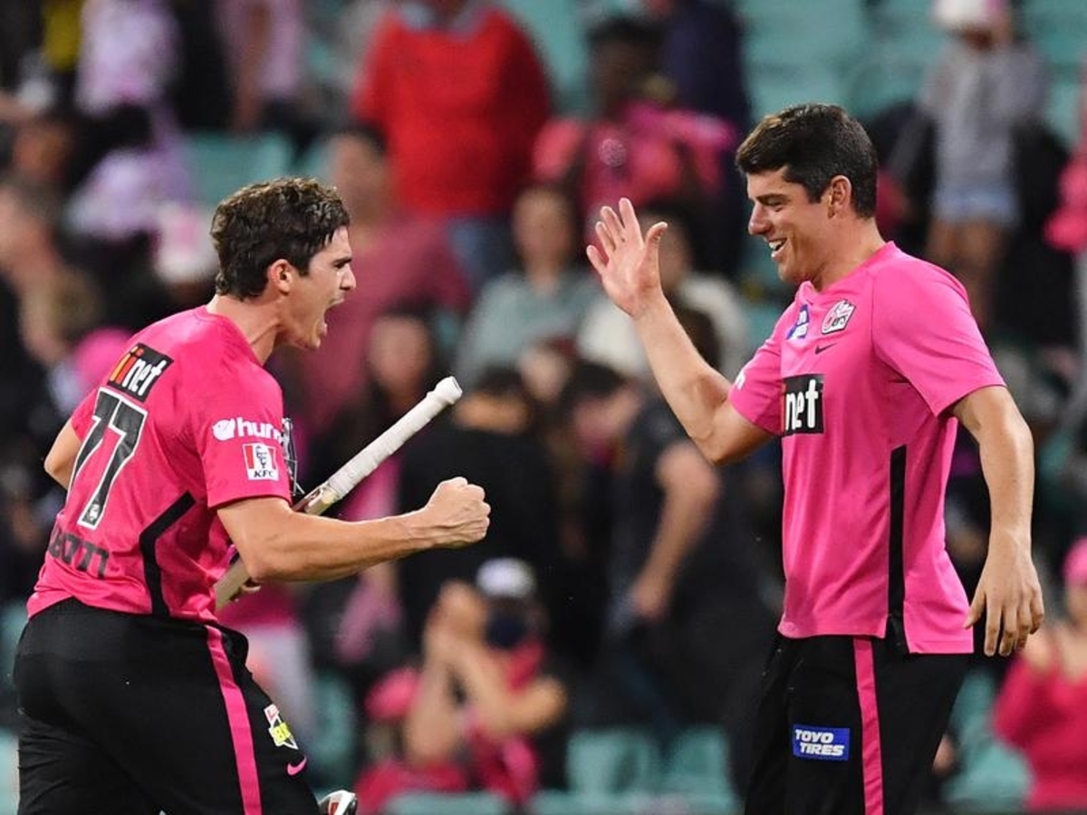 The Sixers landed an early double blow in the chase, with openers Jake Fraser-McGurk and Aaron Finch both out lbw to Jackson Bird and Sean Abbott respectively in the opening two overs, leaving the Renegades 2-11.