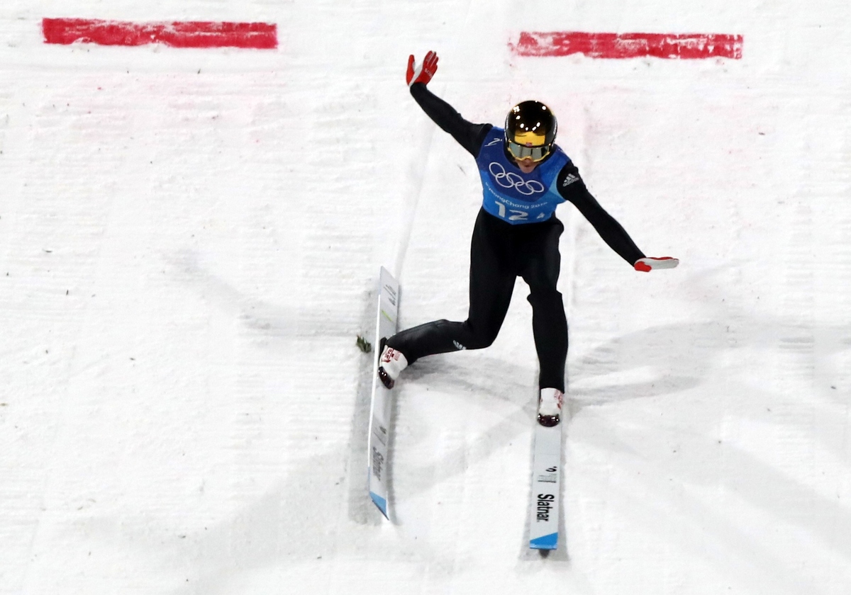 The stage was set for Johansson, his trademark handlebar moustache visible beneath his goggles, and the 27 year-old, who won bronze in both the normal and large hill individual events, soared through the crisp night air to claim a well-deserved Olympic gold medal.