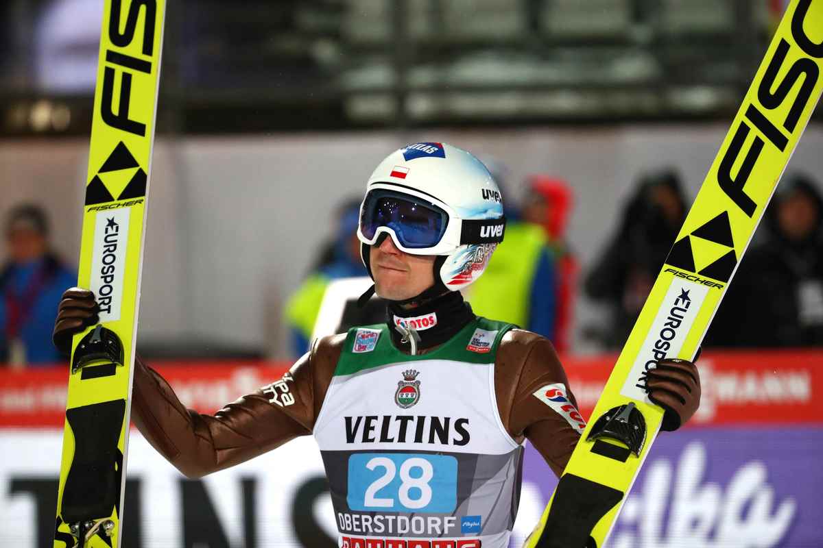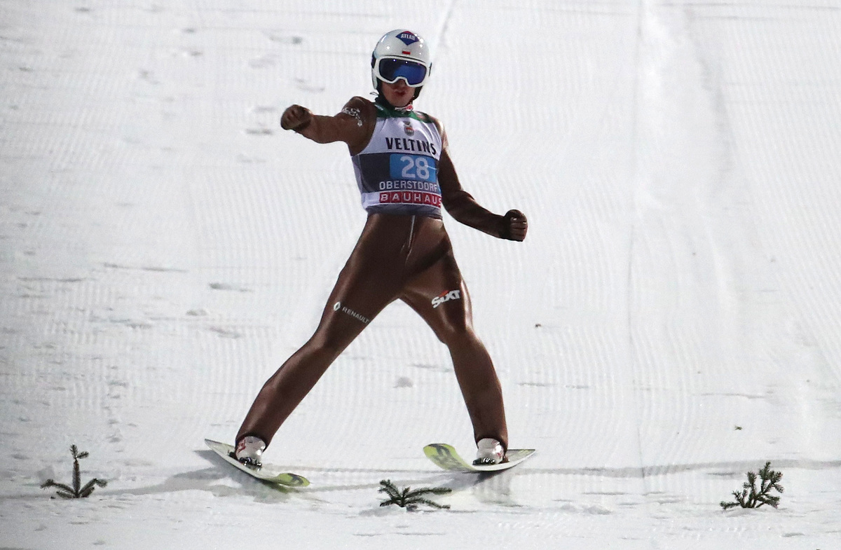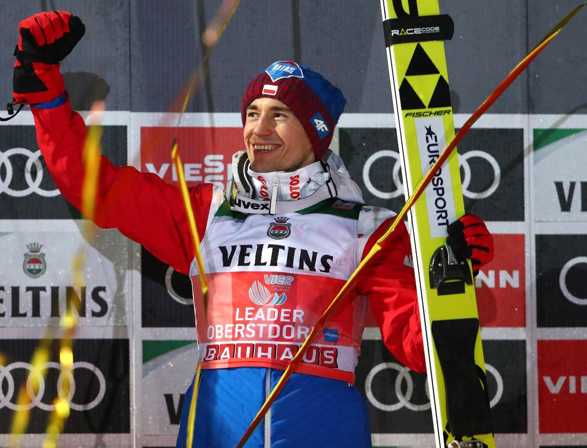 The Pole, a double gold medallist at the Sochi Games in 2014, was fourth after the first round of jumps but overhauled his rivals with a massive leap of 137 metres, the longest of the day, in the second round.