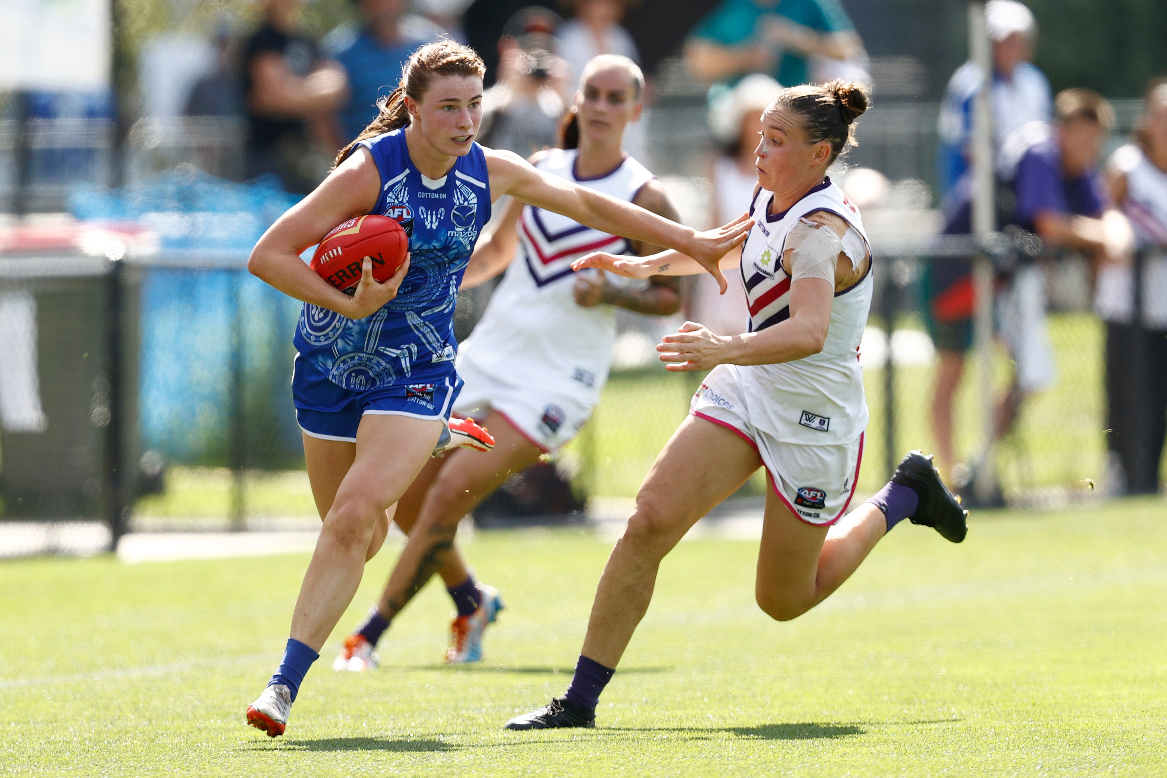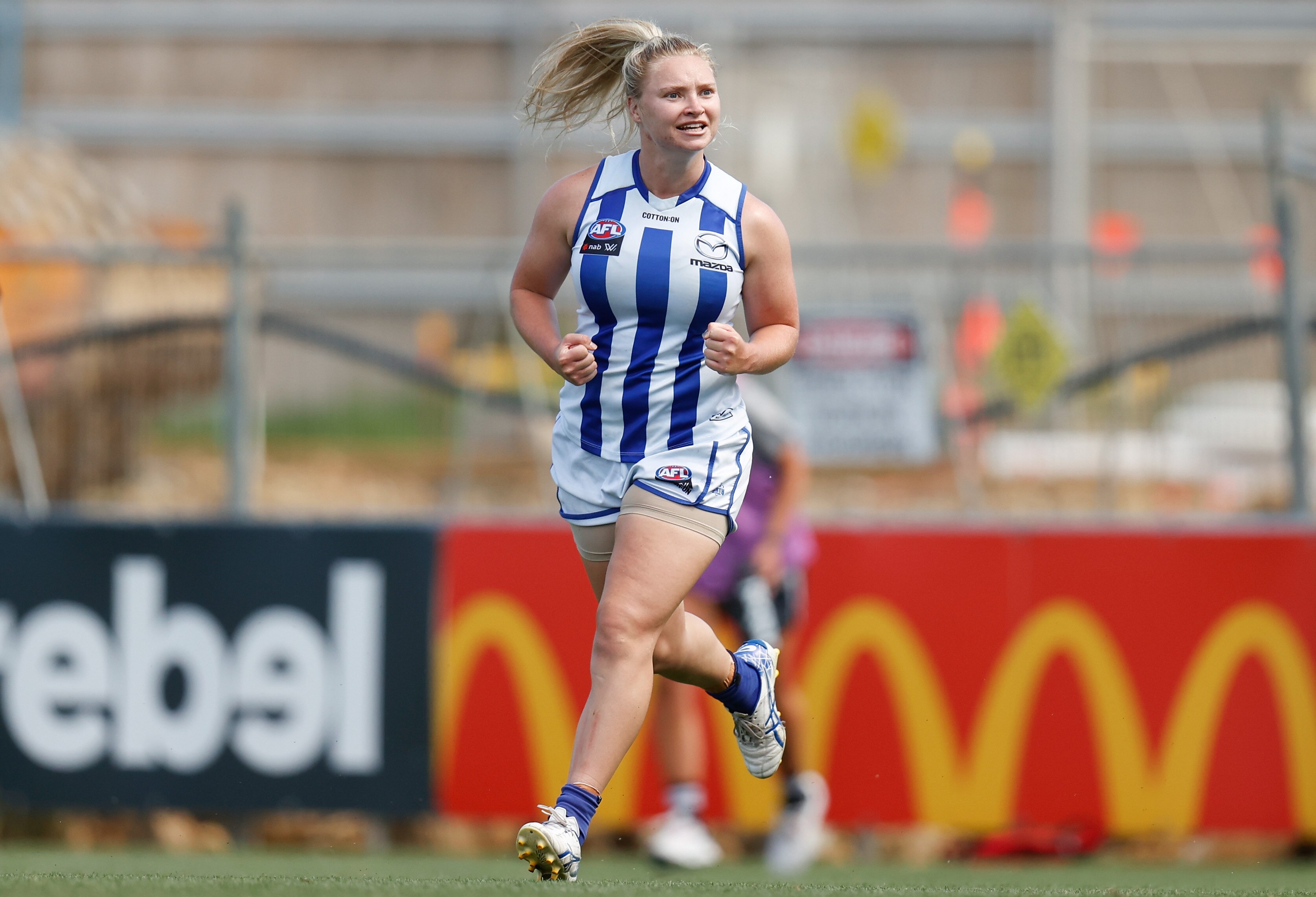 This neat ball use is key to the Kangaroos' game style — an uncontested kick-mark game — and without the experienced Kaitlyn Ashmore offering that to North Melbourne next season given her move to Hawthorn, more responsibility now falls on Eddey to be that connector.
